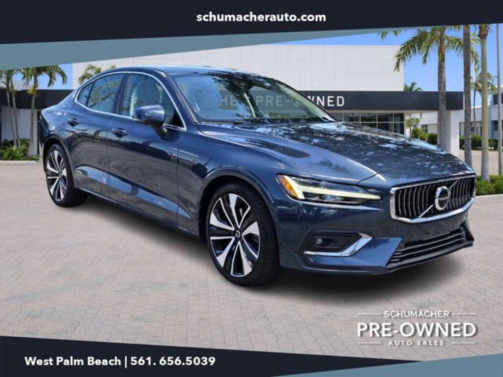 2023 Volvo S60 Ultimate Denim Blue Metallic CARFAX One-Owner. Clean CARFAX. FWD Automatic with Geartronic 2.0L I4 VOLVO CERTIFICATION, S60 Ultimate, 4D Sedan, 2.0L I4, Automatic with Geartronic, FWD, Denim Blue Metallic, Blond Leather, 14 Speakers, 4-Wheel Disc Brakes, ABS brakes, Air Conditioning, Alloy wheels, AM/FM radio: SiriusXM, Anti-whiplash front head restraints, Apple CarPlay, Auto High-beam Headlights, Auto-dimming door mirrors, Auto-dimming Rear-View mirror, Automatic temperature control, Brake assist, Bumpers: body-color, Delay-off headlights, Driver door bin, Driver vanity mirror, Dual front impact airbags, Dual front side impact airbags, Electronic Stability Control, Emergency communication system: Volvo Cars App w/4 Year Subscription, Exterior Parking Camera Rear, Four wheel independent suspension, Front anti-roll bar, Front Bucket Seats, Front Center Armrest, Front dual zone A/C, Front fog lights, Front reading lights, Fully automatic headlights, Garage door transmitter: HomeLink, Genuine wood dashboard insert, harman/kardon® Speakers, Heads-Up Display, Heated door mirrors, Illuminated entry, Knee airbag, Leather Seating Surfaces, Leather Shift Knob, Low tire pressure warning, Memory seat, Navigation system: Sensus Navigation, Occupant sensing airbag, Outside temperature display, Overhead airbag, Overhead console, Panic alarm, Passenger door bin, Passenger vanity mirror, Power door mirrors, Power driver seat, Power moonroof, Power passenger seat, Power steering, Power windows, Radio data system, Radio: harman/kardon Premium Audio, Rain sensing wipers, Rear air conditioning, Rear anti-roll bar, Rear dual zone A/C, Rear fog lights, Rear reading lights, Rear seat center armrest, Rear window defroster, Remote keyless entry, Security system, Speed control, Split folding rear seat, Steering wheel mounted audio controls, Tachometer, Telescoping steering wheel, Tilt steering wheel, Traction control, Trip computer, Turn signal indicator mirrors, Variably intermittent wipers, Wheels: 19" 5-Open Spoke Black Diamond Cut Alloy.