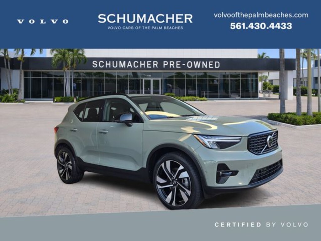 2023 Volvo XC40 B5 Plus Dark Theme Sage Green Metallic CARFAX One-Owner. Certified. AWD Automatic with Geartronic 2.0L I4 Turbocharged DOHC 16V LEV3-ULEV70 XC40 B5 Plus Dark Theme, 4D Sport Utility, 2.0L I4 Turbocharged DOHC 16V LEV3-ULEV70, Automatic with Geartronic, AWD, Sage Green Metallic, Charcoal Leather, 360 Surround View Camera, 4-Wheel Disc Brakes, 8 Speakers, ABS brakes, Air Conditioning, Air Purifier, Alloy wheels, AM/FM Radio, AM/FM radio: SiriusXM, Apple CarPlay, Auto High-beam Headlights, Auto-dimming door mirrors, Auto-dimming Rear-View mirror, Automatic temperature control, Brake assist, Bumpers: body-color, Cargo Tray, Connect Suede Textile/Microtech Seating Surfaces, Delay-off headlights, Driver Assist Package, Driver door bin, Driver vanity mirror, Dual front impact airbags, Dual front side impact airbags, Electronic Stability Control, Emergency communication system: Volvo Cars App w/4 Year Subscription, Exterior Parking Camera Rear, First Aid Kit, Four wheel independent suspension, Front anti-roll bar, Front Bucket Seats, Front Center Armrest, Front dual zone A/C, Front fog lights, Front reading lights, Fully automatic headlights, Garage door transmitter: HomeLink, Hands-Free Power Tailgate, Heated door mirrors, Heated front seats, Illuminated entry, Internet access capable: Digital Services Package w/ 4 Year Subscription, Knee airbag, Low tire pressure warning, Memory seat, Navigation System, Occupant sensing airbag, Outside temperature display, Overhead airbag, Overhead console, Panic alarm, Passenger door bin, Passenger vanity mirror, Pilot Assist Driver Assistance System, Power door mirrors, Power driver seat, Power moonroof, Power passenger seat, Power steering, Power windows, Protection Package Premier, Radio data system, Rain sensing wipers, Rear anti-roll bar, Rear fog lights, Rear reading lights, Rear seat center armrest, Rear window defroster, Rear window wiper, Remote keyless entry, Rubber Floor Mats, Security system, Speed control, Speed-sensing steering, Split folding rear seat, Spoiler, Steering wheel mounted audio controls, Tachometer, Telescoping steering wheel, Tilt steering wheel, Traction control, Trip computer, Turn signal indicator mirrors, Variably intermittent wipers, Wheel Locks, Wheels: 18" 5-Double Spoke Black Diamond Cut Alloy, Wheels: 20" 5-Double Spoke Black Alloy.
