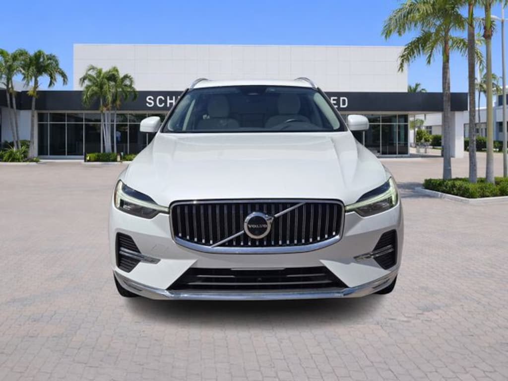2023 Volvo XC60 B5 Plus Bright Theme Crystal White Metallic CARFAX One-Owner. Certified. FWD Automatic with Geartronic 2.0L I4 Turbocharged XC60 B5 Plus Bright Theme, 4D Sport Utility, 2.0L I4 Turbocharged, Automatic with Geartronic, FWD, Crystal White Metallic, Blond w/Leather Upholstery (UA), 10 Speakers, 4-Wheel Disc Brakes, ABS brakes, Air Conditioning, Air Purifier, Alloy wheels, AM/FM radio: SiriusXM, Anti-whiplash front head restraints, Apple CarPlay, Auto High-beam Headlights, Auto-dimming door mirrors, Auto-dimming Rear-View mirror, Automatic temperature control, Brake assist, Bumper Cover, Bumpers: body-color, Cargo Tray, Delay-off headlights, Driver door bin, Driver vanity mirror, Dual front impact airbags, Dual front side impact airbags, Electronic Stability Control, Emergency communication system: Volvo Cars App w/4 Year Subscription, Exterior Parking Camera Rear, First Aid Kit, Four wheel independent suspension, Front anti-roll bar, Front Bucket Seats, Front Center Armrest, Front dual zone A/C, Front fog lights, Front reading lights, Fully automatic headlights, Garage door transmitter: HomeLink, Genuine wood console insert, Genuine wood dashboard insert, Heated door mirrors, Illuminated entry, Integrated 2 Outer Position 2nd Row Booster Cushions, Knee airbag, Leather Shift Knob, Leather Upholstery, Low tire pressure warning, Luggage Cover, Memory seat, Occupant sensing airbag, Outside temperature display, Overhead airbag, Panic alarm, Passenger door bin, Passenger vanity mirror, Power door mirrors, Power driver seat, Power moonroof, Power Operated Tailgate, Power passenger seat, Power steering, Power windows, Protection Package Premier, Radio data system, Radio: harman/kardon Premium Sound, Radio: High Performance Audio System, Rain sensing wipers, Rear anti-roll bar, Rear fog lights, Rear reading lights, Rear seat center armrest, Rear window defroster, Rear window wiper, Remote keyless entry, Rubber Floor Mats, Security system, Speed control, Split folding rear seat, Spoiler, Steering wheel mounted audio controls, Tachometer, Telescoping steering wheel, Tilt steering wheel, Traction control, Trip computer, Turn signal indicator mirrors, Variably intermittent wipers, Wheel Locks, Wheels: 19" 5-V Spoke Black Diamond Cut Alloy, Wheels: 20" 5-Multi Spoke Black Diamond Cut Alloy.
