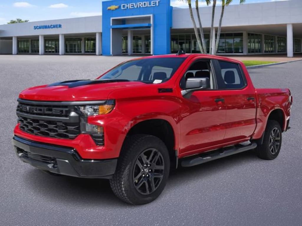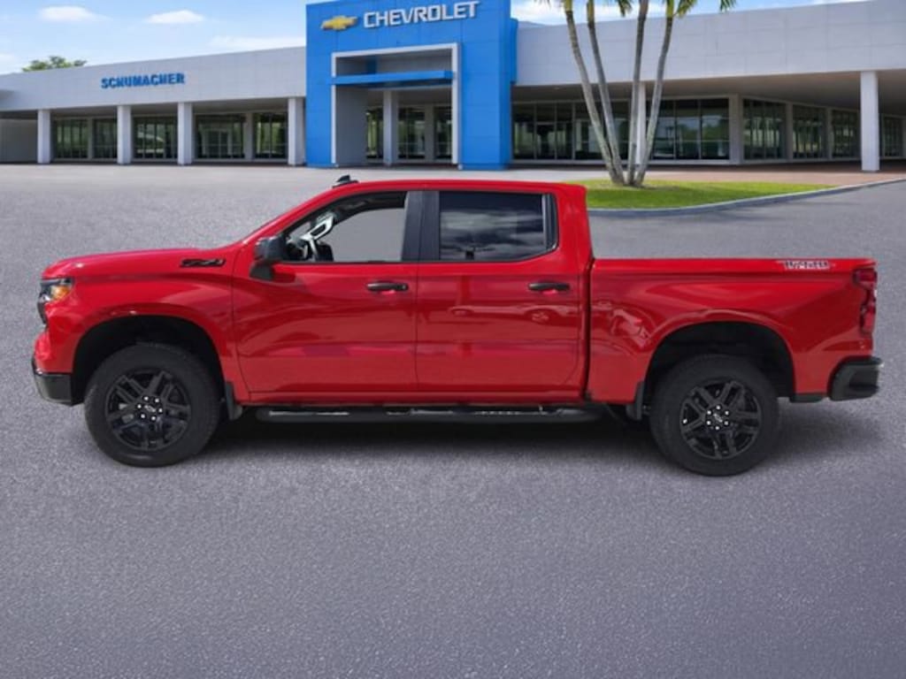 Red Hot 2026 Chevrolet Silverado 1500 Custom Trail Boss 4WD 8-Speed Automatic 2.7L I4 Turbocharged DOHC 16V LEV3-SULEV30 310hp 8-Speed Automatic, 4WD, Black Cloth.WE DELIVER TO YOUR HOME OR OFFICE !!! Custom Convenience Package (Electric Rear-Window Defogger, EZ Lift Power Lock and Release Tailgate, LED Cargo Area Lighting, Remote Vehicle Starter System, and Theft Deterrent System (unauthorized Entry)), Dark Essentials Package (Black Name Plates), Preferred Equipment Group 2CX (10-Way Power Driver Seat with Lumbar, 120-Volt Bed Mounted Power Outlet, 120-Volt Interior Power Outlet, 3.5 Monochromatic Display Driver Info Center, 40/20/40 Front Split-Bench Seat, Auto-Locking Rear Differential, Bluetooth® For Phone, Cloth Seat Trim, Color-Keyed Carpeting Floor Covering, Deep-Tinted Glass, Dual Rear USB Ports (charge Only), Electronic Cruise Control, Front Rubberized Vinyl Floor Mats, HD Rear Vision Camera, Manual Tilt Wheel Steering Column, OnStar Services Capable, Performance Red Recovery Hooks, Power Front Windows with Driver Express Up/Down, Power Front Windows with Passenger Express Down, Power Rear Windows with Express Down, Rear 60/40 Folding Bench Seat (folds Up), Rear Rubberized-Vinyl Floor Mats, Remote Keyless Entry, SiriusXM Trial Subscription, Standard Tailgate, Teen Driver, Tire Pressure Monitoring System, Wheels: 18 x 8.5 Black Painted Aluminum, and Wi-Fi Hot Spot Capable), Suspension Package (Heavy-Duty Air Filter and Hill Descent Control), Trailering Package (Hitch Guidance), Turbomax Blackout Package (4 Black Round Assist Steps, Black Chrome Exhaust Tip, and Wheels: 20 x 9 High Gloss Black Painted Aluminum), 8-Speed Automatic, 4WD, Black Cloth, 220 Amp Alternator, 3.42 Rear Axle Ratio, 4-Wheel Disc Brakes, 6 Speakers, 6-Speaker Audio System, ABS brakes, Air Conditioning, Alloy wheels, AM/FM radio: SiriusXM, Apple CarPlay/Android Auto, Auto High-beam Headlights, Automatic Emergency Braking, Black Tailgate CHEVROLET Lettering, Brake assist, Chevytec Spray-on Black Bedliner, Compass, Delay-off headlights, Driver door bin, Driver vanity mirror, Dual front impact airbags, Dual front side impact airbags, Electronic Stability Control, Emergency communication system: OnStar, Following Distance Indicator, Forward Collision Alert, Front anti-roll bar, Front Center Armrest w/Storage, Front Frame-Mounted Black Recovery Hooks, Front Pedestrian Braking, Front reading lights, Front wheel independent suspension, Fully automatic headlights, Heated door mirrors, Illuminated entry, IntelliBeam Automatic High Beam on/Off, Lane Keep Assist with Lane Departure Warning, Low tire pressure warning, Occupant sensing airbag, Outside temperature display, Overhead airbag, Overhead console, Panic alarm, Passenger door bin, Passenger vanity mirror, Power door mirrors, Power driver seat, Power steering, Power windows, Premium audio system: Chevrolet Infotainment 3, Radio data system, Radio: Chevrolet Infotainment 3 System, Rear reading lights, Rear step bumper, Rear Wheelhouse Liners, Rear window defroster, Remote keyless entry, Security system, Single Outlet Exhaust, Speed control, Speed-sensing steering, Split folding rear seat, Tachometer, Tilt steering wheel, Traction control, Trip computer, Variably intermittent wipers, and Voltmeter. Price includes: $1000 - Chevrolet Select Market Bonus Cash. Exp. 04/30/2026 $2000 - Chevrolet Consumer Cash Program. Exp. 04/30/2026