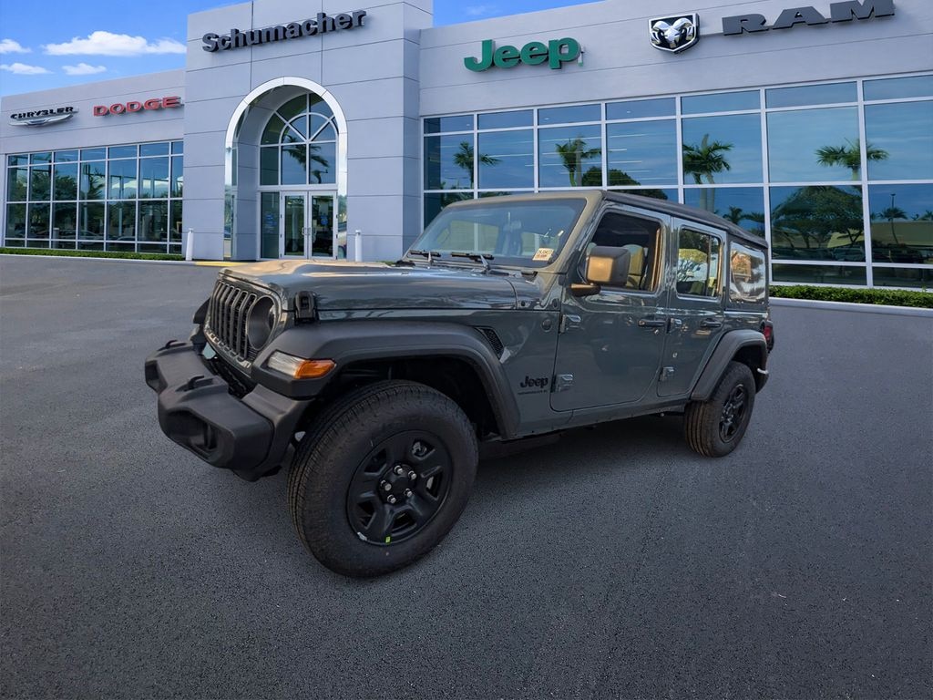 2026 Jeep Wrangler Sport 3.6L V6 24V VVT 4WD Anvil Clear Coat 12.3" Touchscreen Display, 4-Wheel Disc Brakes, 4G LTE Wi-Fi Hot Spot, 8 Speakers, ABS brakes, Air Conditioning, AM/FM radio: SiriusXM with 360L, Apple CarPlay, Apple CarPlay/Android Auto, Brake assist, Compass, Connectivity - US/Canada, Driver door bin, Driver vanity mirror, Dual front impact airbags, Dual front side impact airbags, Electronic Stability Control, For More Info, Call 800-643-2112, Front anti-roll bar, Front reading lights, Google Android Auto, Illuminated entry, Integrated Center Stack Radio, Integrated roll-over protection, Low tire pressure warning, MOPAR All-Weather Floor Mats, Myflexcare Service Plan, Non-Lock Fuel Cap Without Discriminator, Normal Duty Suspension, Occupant sensing airbag, Outside temperature display, Overhead airbag, ParkView Rear Back-Up Camera, Passenger vanity mirror, Power steering, Power windows, Quick Order Package 24B Sport, Radio data system, Radio: Uconnect 5 with 12.3" Display, Rear anti-roll bar, Rear reading lights, Remote keyless entry, SiriusXM Radio Service, SiriusXM with 360L, Steering wheel mounted audio controls, Tachometer, Telescoping steering wheel, Tilt steering wheel, Traction control, Trip computer.