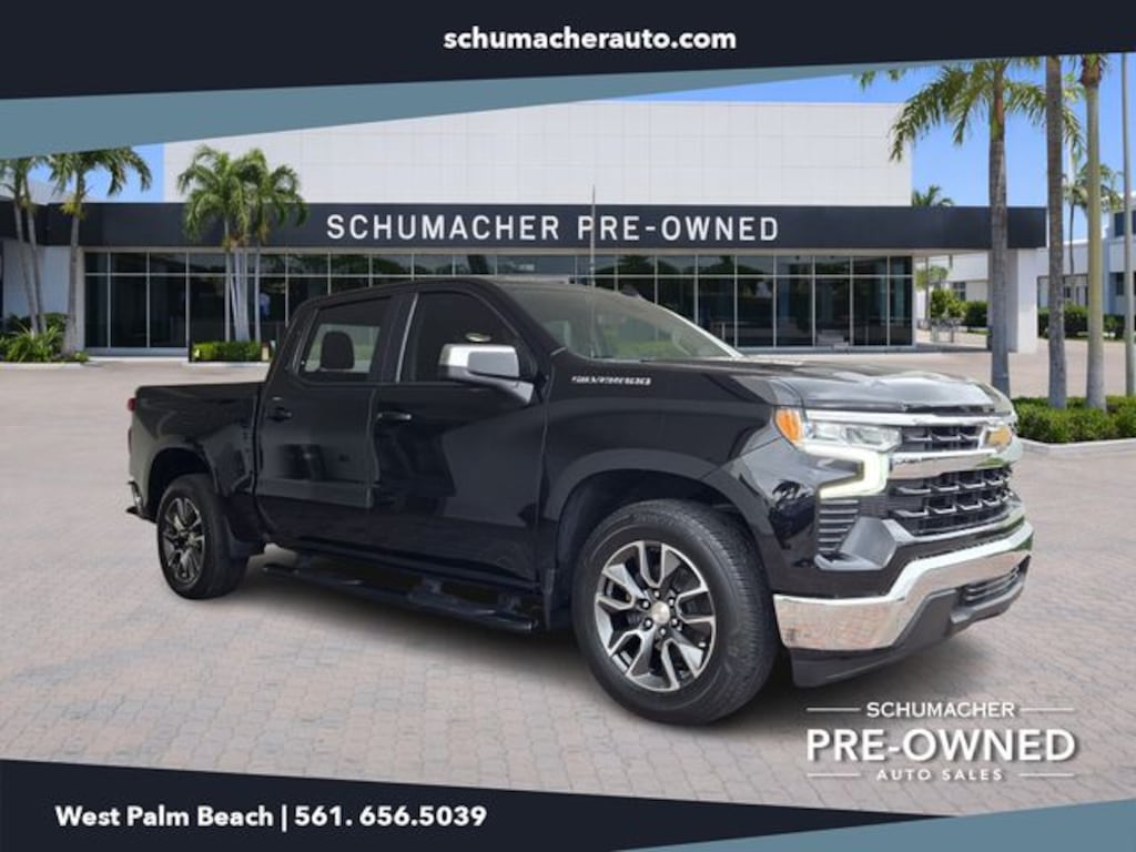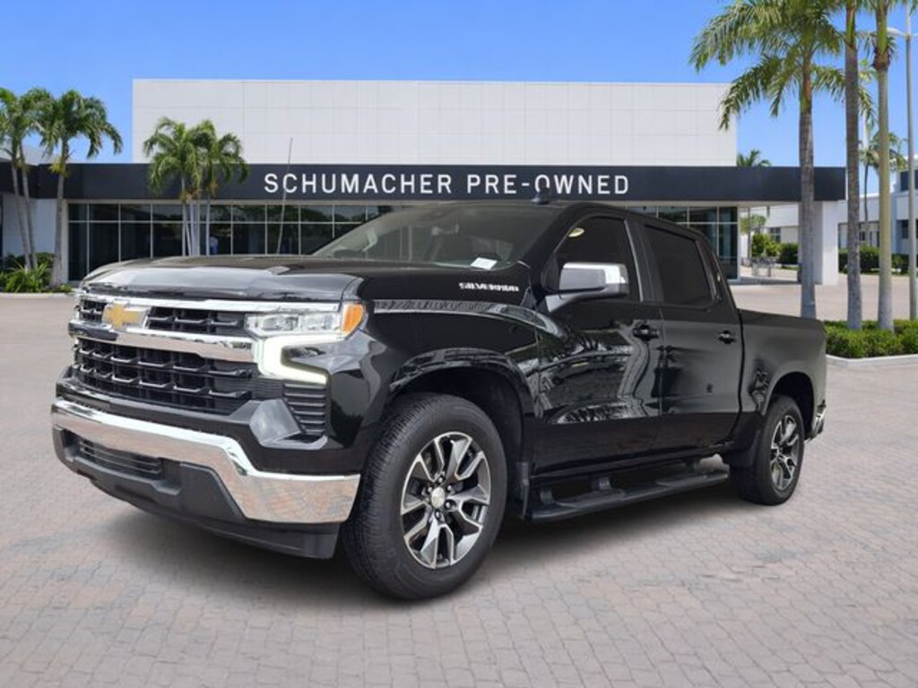 2023 Chevrolet Silverado 1500 LT Black CARFAX One-Owner. Clean CARFAX. RWD 10-Speed Automatic EcoTec3 5.3L V8 Silverado 1500 LT, 4D Crew Cab, EcoTec3 5.3L V8, 10-Speed Automatic, RWD, Black, Jet Black Cloth, 10-Way Power Driver Seat w/Lumbar, 12.3" Multicolor Reconfigurable Digital Display, 120-Volt Bed Mounted Power Outlet, 120-Volt Instrument Panel Power Outlet, 170 Amp Alternator, 2 USB Data Ports, 220 Amp Alternator, 3.23 Rear Axle Ratio, 4-Wheel Disc Brakes, 40/20/40 Front Split-Bench Seat, 6 Speakers, 6-Speaker Audio System, ABS brakes, Air Conditioning, All-Star Edition, Alloy wheels, AM/FM radio: SiriusXM with 360L, Apple CarPlay/Android Auto, Auto High-beam Headlights, Auto-Locking Rear Differential, Automatic Emergency Braking, Automatic temperature control, Auxiliary External Transmission Oil Cooler, Bluetooth® For Phone, Brake assist, Bumpers: chrome, Chevrolet Connected Access Capable, Chrome Mirror Caps, Cloth Seat Trim, Color-Keyed Carpeting Floor Covering, Compass, Convenience Package, Deep-Tinted Glass, Delay-off headlights, Driver door bin, Driver vanity mirror, Dual front impact airbags, Dual front side impact airbags, Dual Rear USB Ports (Charge Only), Dual-Zone Automatic Climate Control, Electric Rear-Window Defogger, Electrical Steering Column Lock, Electronic Cruise Control, Electronic Stability Control, Electronic Transmission Range Selector Shifter, External Engine Oil Cooler, EZ Lift Power Lock & Release Tailgate, Floor Mounted Center Console, Following Distance Indicator, Forward Collision Alert, Front anti-roll bar, Front Bucket Seats, Front Center Armrest w/Storage, Front dual zone A/C, Front Pedestrian Braking, Front reading lights, Front Rubberized Vinyl Floor Mats, Front wheel independent suspension, Fully automatic headlights, HD Rear Vision Camera, Heated door mirrors, Heated Driver & Front Outboard Passenger Seats, Heated front seats, Heated Power-Adjustable Outside Mirrors, Heated Steering Wheel, Heated steering wheel, High Capacity Suspension Package, Hitch Guidance, Illuminated entry, Inside Rear-View Mirror w/Tilt, IntelliBeam Automatic High Beam On/Off, Keyless Open & Start, Lane Keep Assist w/Lane Departure Warning, LED Cargo Area Lighting, Low tire pressure warning, Not Equipped w/Steering Column Lock, Occupant sensing airbag, OnStar & Chevrolet Connected Services Capable, Outside temperature display, Overhead airbag, Overhead console, Panic alarm, Passenger door bin, Passenger vanity mirror, Power door mirrors, Power driver seat, Power Front Windows w/Driver Express Up/Down, Power Front Windows w/Passenger Express Down, Power Rear Windows w/Express Down, Power steering, Power windows, Preferred Equipment Group 1LT, Premium audio system: Chevrolet Infotainment 3 Premium, Radio data system, Radio: Chevrolet Infotainment 3 Premium System, Rear 60/40 Folding Bench Seat (Folds Up), Rear reading lights, Rear Rubberized-Vinyl Floor Mats, Rear step bumper, Rear window defroster, Remote keyless entry, Remote Start Package, Remote Vehicle Starter System, Security system, SiriusXM w/360L, Speed control, Speed-sensing steering, Split folding rear seat, Standard Suspension Package, Standard Tailgate, Steering Wheel Audio Controls, Steering wheel mounted audio controls, Tachometer, Telescoping steering wheel, Theft Deterrent System (Unauthorized Entry), Tilt steering wheel, Traction control, Trailering Package, Trip computer, Variably intermittent wipers, Voltmeter, Wheels: 17" x 8" Bright Silver Painted Aluminum, Wheels: 20" x 9" Painted Aluminum, Wi-Fi Hot Spot Capable, Wireless Charging, Wireless Phone Projection, Wrapped Steering Wheel.