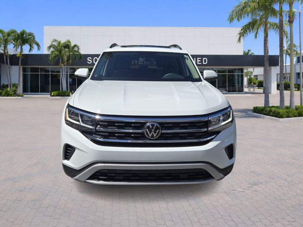 2023 Volkswagen Atlas 3.6L V6 SE w/Technology Pure White CARFAX One-Owner. Clean CARFAX. FWD 8-Speed Automatic with Tiptronic 3.6L VR6 **VW CERTIFIED**, Atlas 3.6L V6 SE w/Technology, 4D Sport Utility, 3.6L VR6, 8-Speed Automatic with Tiptronic, FWD, Pure White, Mauro Brown Artificial Leather, 3.60 Axle Ratio, 3rd row seats: split-bench, 4-Wheel Disc Brakes, 6 Speakers, ABS brakes, Air Conditioning, Alloy wheels, AM/FM radio: SiriusXM with 360L, Auto-Dimming Rear-View Mirror, Auto-dimming Rear-View mirror, Automatic temperature control, Black Wheel Package, Brake assist, Bumpers: body-color, Compass, Delay-off headlights, Driver door bin, Driver vanity mirror, Dual front impact airbags, Dual front side impact airbags, Electronic Stability Control, Emergency communication system: VW Car-Net Safe & Secure 5-year, Exterior Parking Camera Rear, Four wheel independent suspension, Front anti-roll bar, Front Bucket Seats, Front Center Armrest, Front dual zone A/C, Front fog lights, Front reading lights, Fully automatic headlights, Heated Comfort Front Bucket Seats, Heated door mirrors, Heated front seats, Heavy Duty Trunk Liner w/VW CarGo Blocks, Illuminated entry, Leather Shift Knob, Low tire pressure warning, Luggage Net, Occupant sensing airbag, Outside temperature display, Overhead airbag, Overhead console, Panic alarm, Panoramic Sunroof Package, Passenger door bin, Passenger vanity mirror, Perforated V-Tex Leatherette Seating Surfaces, Power door mirrors, Power driver seat, Power Liftgate, Power steering, Power Tilting & Sliding Panoramic Sunroof, Power windows, Privacy Cover, Radio data system, Radio: MIB3 Composition Media w/8" Touchscreen, Rain sensing wipers, Rear air conditioning, Rear anti-roll bar, Rear reading lights, Rear seat center armrest, Rear window defroster, Rear window wiper, Remote keyless entry, Rubber Mats Kit - Bench Seats, Security system, Speed control, Speed-sensing steering, Split folding rear seat, Spoiler, Standard Suspension, Steering wheel mounted audio controls, Tachometer, Telescoping steering wheel, Tilt steering wheel, Traction control, Trip computer, Turn signal indicator mirrors, Variably intermittent wipers, Volkswagen Logo Puddle Lights, VW Care, Wheels: 20" x 8J 5-Spoke Black Painted Alloy, Wheels: 20" x 8J 5-Spoke Silver Painted Alloy.