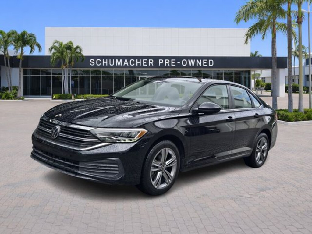 2024 Volkswagen Jetta 1.5T SE Black CARFAX One-Owner. Clean CARFAX. Certified. FWD 8-Speed Automatic with Tiptronic 1.5L I-4 DI DOHC Turbocharged **VW CERTIFIED**, Jetta 1.5T SE, 4D Sedan, 1.5L I-4 DI DOHC Turbocharged, 8-Speed Automatic with Tiptronic, FWD, Black, 4 Speakers, 4-Wheel Disc Brakes, ABS brakes, Active Blind Spot Monitor, Air Conditioning, Alloy wheels, Auto-dimming Rear-View mirror, Automatic temperature control, Brake assist, Bumpers: body-color, Delay-off headlights, Driver door bin, Driver vanity mirror, Dual front impact airbags, Dual front side impact airbags, Electronic Stability Control, Emergency communication system: VW Car-Net Safe & Secure 5-year, Exterior Parking Camera Rear, Front anti-roll bar, Front Bucket Seats, Front Center Armrest, Front dual zone A/C, Front wheel independent suspension, Fully automatic headlights, Heated door mirrors, Heated Front Seats, Heated front seats, Illuminated entry, Leather Shift Knob, Leather steering wheel, Low tire pressure warning, Occupant sensing airbag, Outside temperature display, Overhead airbag, Overhead console, Panic alarm, Passenger door bin, Passenger vanity mirror, Power door mirrors, Power driver seat, Power steering, Power windows, Radio data system, Radio: MIB3 Composition Color w/6.5" Touchscreen, Rain sensing wipers, Rear anti-roll bar, Rear reading lights, Rear seat center armrest, Rear window defroster, Remote keyless entry, Speed control, Speed-sensing steering, Split folding rear seat, Steering wheel mounted audio controls, Tachometer, Telescoping steering wheel, Tilt steering wheel, Traction control, Trip computer, V-Tex Leatherette Seat Trim, Variably intermittent wipers, Wheels: 17" Twin 5-Spoke Silver Painted Alloy.