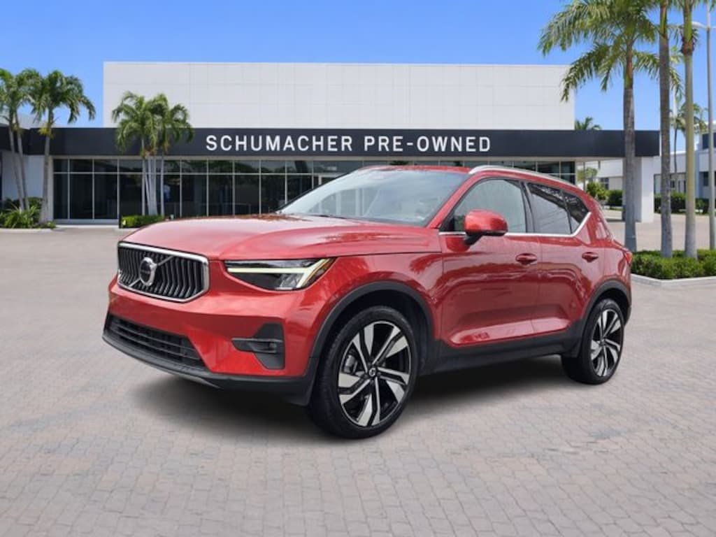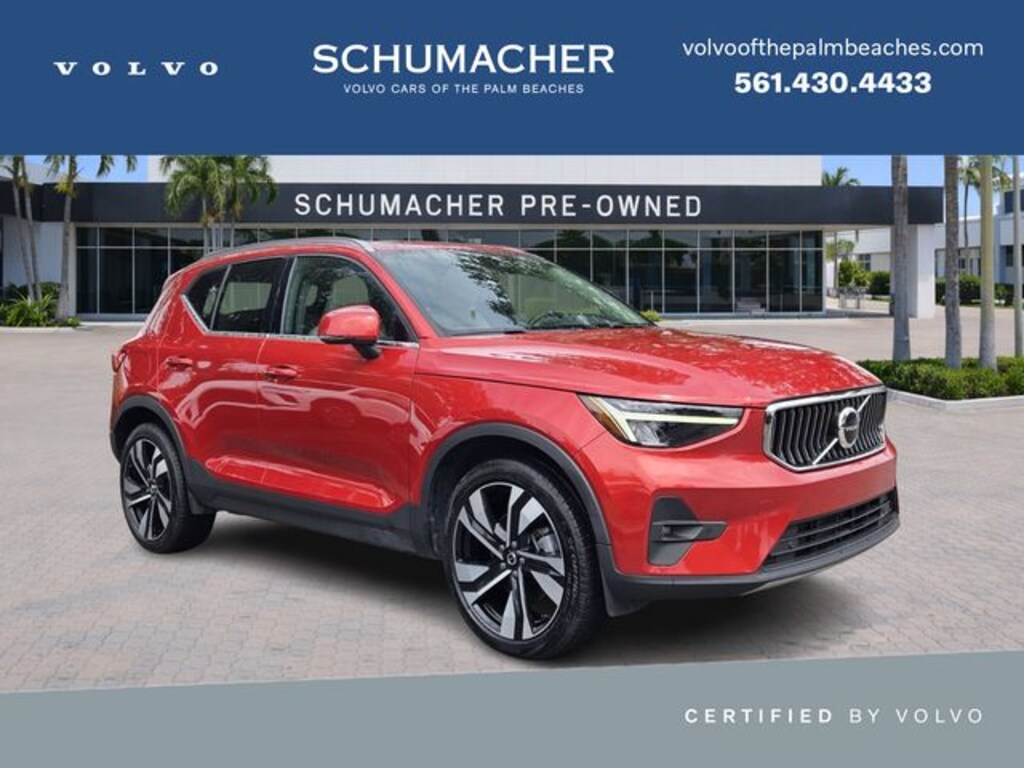 2023 Volvo XC40 B5 Plus Bright Theme Fusion Red Metallic CARFAX One-Owner. Clean CARFAX. AWD Automatic with Geartronic 2.0L I4 Turbocharged DOHC 16V LEV3-ULEV70 VOLVO CERTIFIED, XC40 B5 Plus Bright Theme, 4D Sport Utility, 2.0L I4 Turbocharged DOHC 16V LEV3-ULEV70, Automatic with Geartronic, AWD, Fusion Red Metallic, Blond Leather, 4-Wheel Disc Brakes, 8 Speakers, ABS brakes, Air Conditioning, Alloy wheels, AM/FM Radio, AM/FM radio: SiriusXM, Apple CarPlay, Auto High-beam Headlights, Auto-dimming door mirrors, Auto-dimming Rear-View mirror, Automatic temperature control, Brake assist, Bumpers: body-color, Cargo Tray, Delay-off headlights, Driver door bin, Driver vanity mirror, Dual front impact airbags, Dual front side impact airbags, Electronic Stability Control, Emergency communication system: Volvo Cars App w/4 Year Subscription, Exterior Parking Camera Rear, First Aid Kit, Four wheel independent suspension, Front anti-roll bar, Front Bucket Seats, Front Center Armrest, Front dual zone A/C, Front fog lights, Front reading lights, Fully automatic headlights, Garage door transmitter: HomeLink, Hands-Free Power Tailgate, Heated door mirrors, Heated front seats, Illuminated entry, Internet access capable: Digital Services Package w/ 4 Year Subscription, Knee airbag, Leather Seating Surfaces, Low tire pressure warning, Memory seat, Navigation System, Occupant sensing airbag, Outside temperature display, Overhead airbag, Overhead console, Panic alarm, Passenger door bin, Passenger vanity mirror, Power door mirrors, Power driver seat, Power moonroof, Power passenger seat, Power steering, Power windows, Protection Package Premier, Radio data system, Rain sensing wipers, Rear anti-roll bar, Rear fog lights, Rear reading lights, Rear seat center armrest, Rear window defroster, Rear window wiper, Remote keyless entry, Rubber Floor Mats, Security system, Speed control, Speed-sensing steering, Split folding rear seat, Spoiler, Steering wheel mounted audio controls, Tachometer, Telescoping steering wheel, Tilt steering wheel, Traction control, Trip computer, Turn signal indicator mirrors, Variably intermittent wipers, Wheel Locks, Wheels: 18" 5-Double Spoke Black Diamond Cut Alloy, Wheels: 20" 5-Double Spoke Black Alloy.